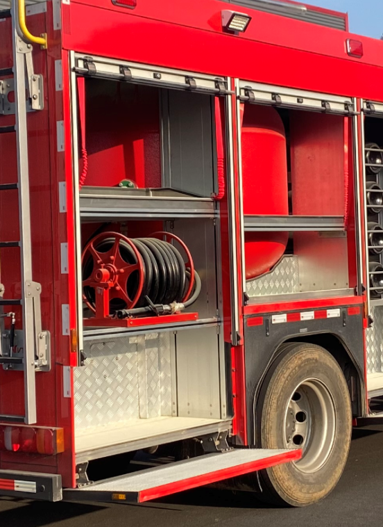 3.1 | 結(jié)構(gòu)設(shè)計(jì):鋼制框架和鋁合金型材專用連接件結(jié)構(gòu)。合理設(shè)計(jì)并增加器材放置空間,放置器材隔斷空間可調(diào)整。對車廂內(nèi)部需要經(jīng)常檢測的部件,在適當(dāng)部位須安有活門,其他需要進(jìn)入車內(nèi)部檢查和維修的地方也應(yīng)敞開或有可移動的板;器材箱應(yīng)具有排水功能。具有自重輕、強(qiáng)度高,外觀平整美觀, 內(nèi)部空間調(diào)整方便、空間利用率高、維護(hù)便捷等特點(diǎn);主線路布置在骨架型材板內(nèi),可安全保護(hù)、防止損壞;內(nèi)飾底板為3mm厚的氧化鋁花紋板,通過具有彈性、高粘接強(qiáng)度的進(jìn)口連接密封膠與主骨架連接;前部器材箱、中部罐體、泵室位于車輛尾部。 |